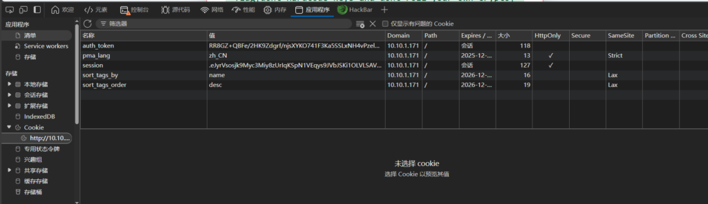 F12→ 切换到 Application展开 Cookies → http://10.10.1.171:18081