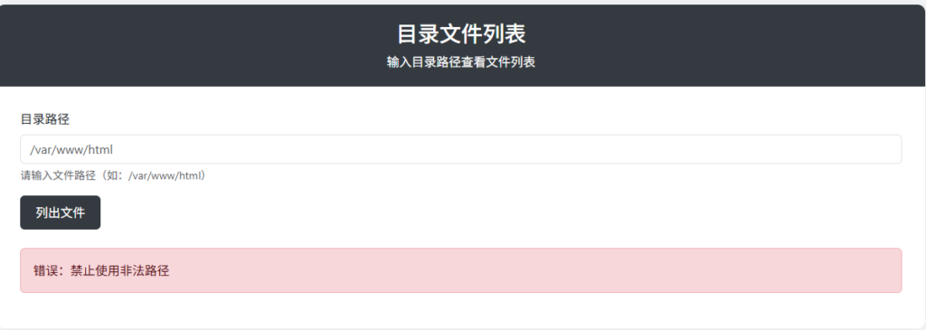 在“项目文件查看”页面中,系统要求输入目录路径。尝试输入 / 或 .. 均被拦截,提示: