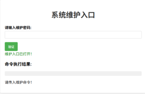 虽然输入 SOUTH 后提示“维护入口已打开!”,但页面没有提供命令输入框,也无法通过 URL 直接传参触发执行。