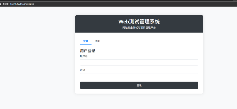访问 http://172.16.12.143,页面标题为 “Web测试管理系统”,提供两个功能入口: