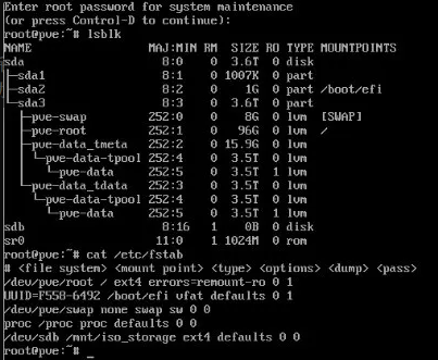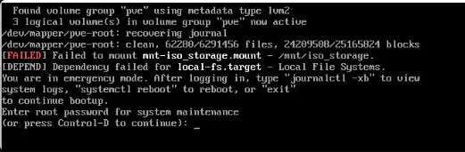 重启服务器后,PVE没有正常启动,停在了紧急模式: