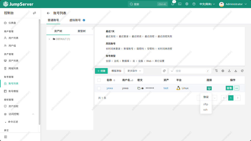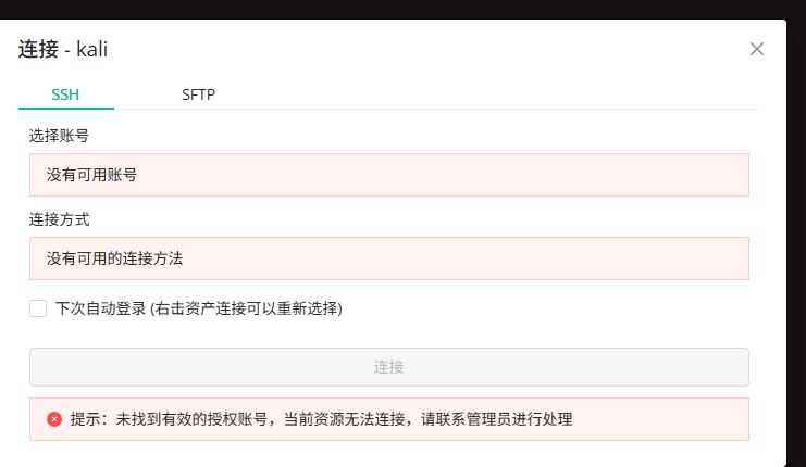 效果:从普通终端登录就会超时失败。从 JumpServer 登录就是正常的