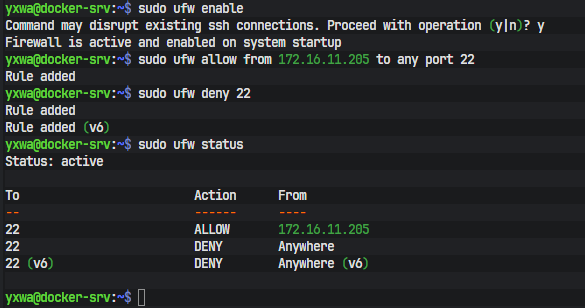 默认情况下,用户仍然可以直接:ssh yxwa@172.16.11.216