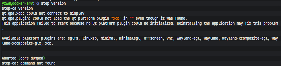 在 Ubuntu 环境里,名为 step 的命令未必就是 Smallstep 的 step-cli。实际操作中,第一次执行 step version 时,终端返回的是 Qt 插件相关报错,而不是版本信息。这说明系统命中了另一个同名程序。