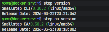 如果输出中已经出现 Smallstep CLI 和 Smallstep CA 的版本号,就说明环境已经准备好。