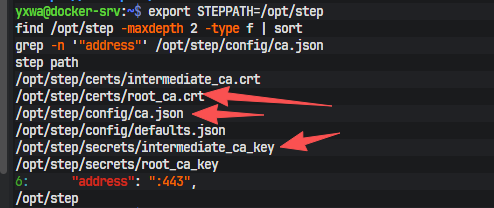 关键文件分别位于 /opt/step/certs、/opt/step/secrets 和 /opt/step/config 目录下。为了确认初始化结果,可以执行以下检查: