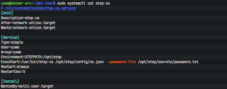 ExecStart=/usr/bin/step-ca /opt/step/config/ca.json --password-file /opt/step/secrets/password.txt