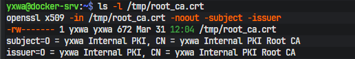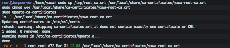 sudo chmod 644 /usr/local/share/ca-certificates/yxwa-root-ca.crt