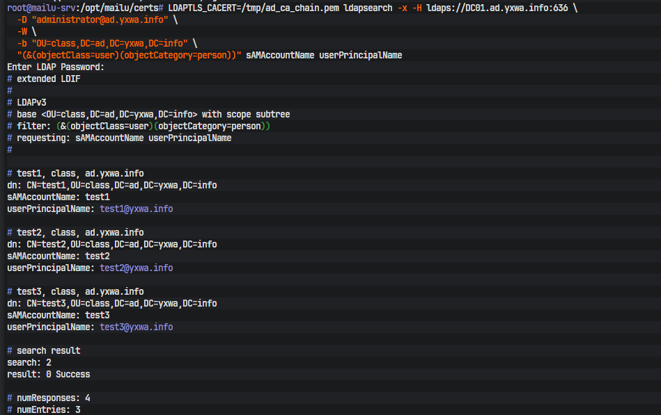 先让 Mailu 服务器信任 AD 的 LDAPS 证书