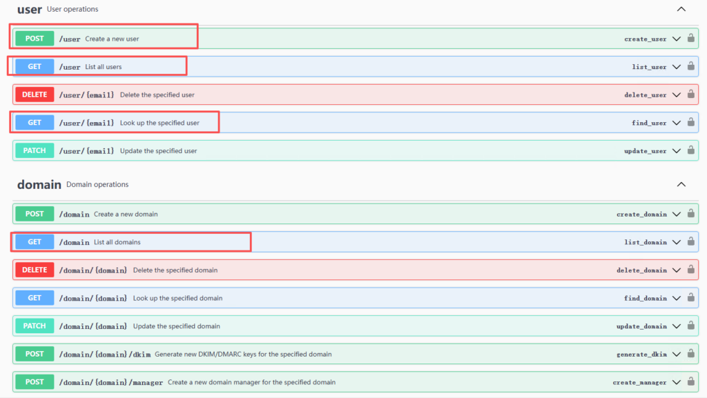 Mailu 已经提供了标准 API,Swagger 中可以看到: